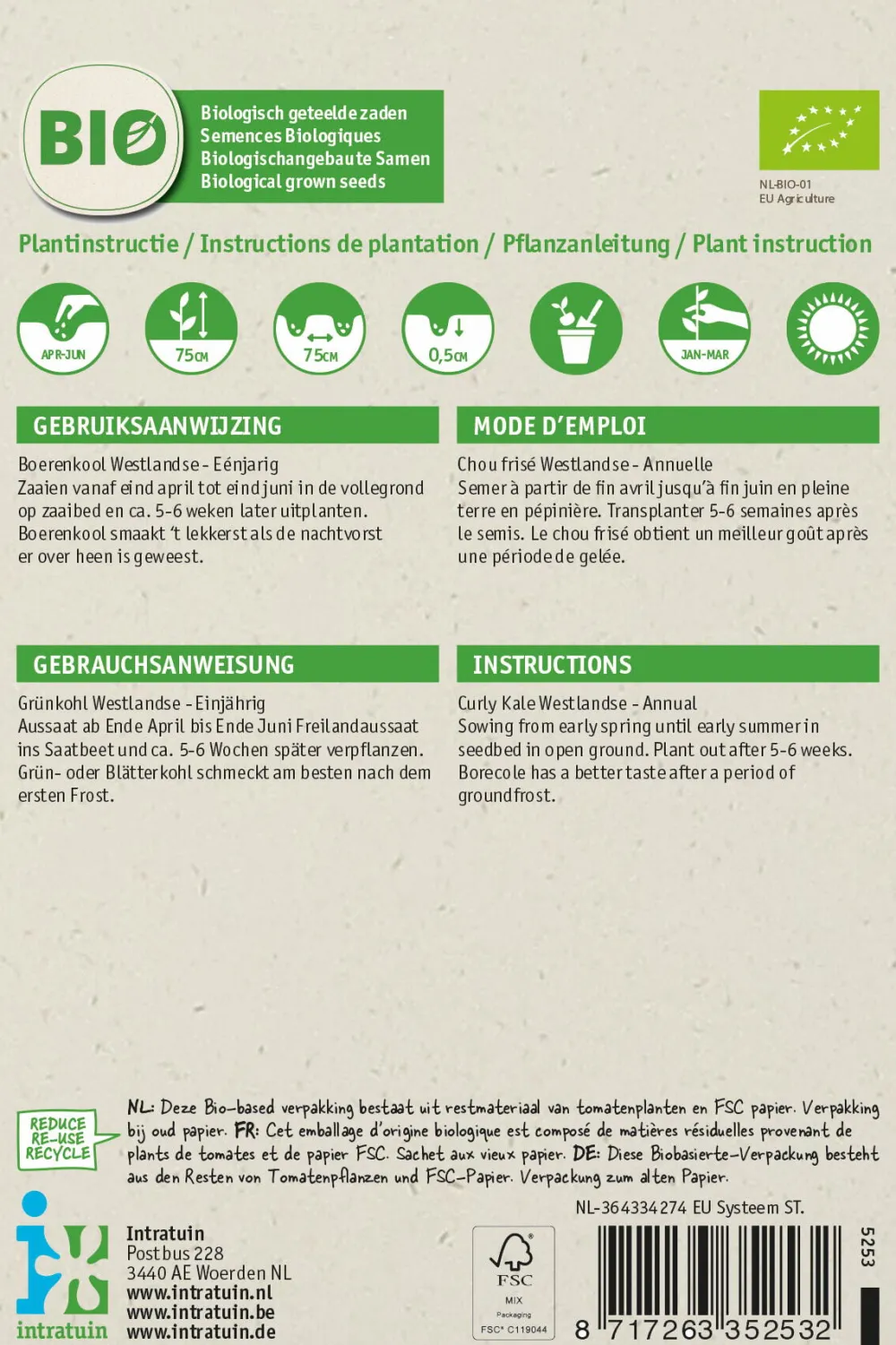 | Besonderheiten | Ernte den Grünkohl nach Nachtfrost, dann ist der Geschmack am besten. Dieses biologisch angebaute Saatgut ist von der Stiftung SKAL zertifiziert. Du erkennst biologische Produkte an dem Bio-Siegelund an den Begriffen „Bio“ oder „Organic“. |