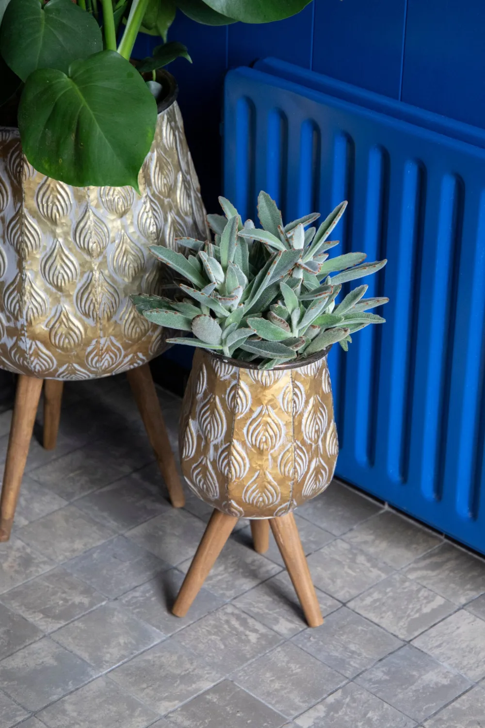 Pflanzen bringen Farbe und Leben in dein Interieur und tragen zu einer entspannten Atmosphäre bei. Mit dem richtigen Blumentopf kommen deine grünen Freunde noch besser zur Geltung! Kombiniere Übertöpfe in verschiedenen Farben, Größen und Höhen für einen dynamischen Effekt. Die schöne Struktur verleiht dem Blumentopf ‚Emir‘ ein luxuriöses, schickes Aussehen. Dieser Blumentopf auf Beinen hat eine goldene Farbe und einen raffinierten Druck auf dem Topf. Die Serie Emir enthält Übertöpfe in unterschiedlichen Größen. Dieser Blumentopf hat einen Durchmesser von 19 cm und eine Gesamthöhe von 39 cm. Die Blumentöpfe sind handgefertigt, also kleine Unikate, die in ihrer Farbe und Form leicht von der Abbildung abweichen können.