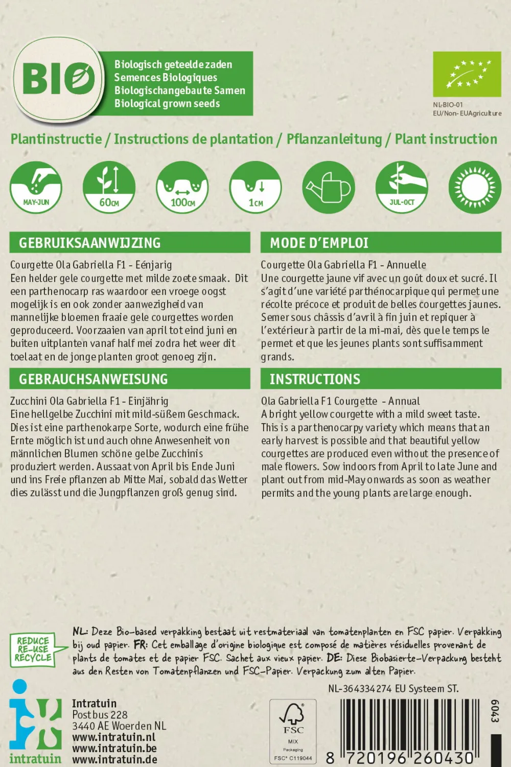 Diese Zucchini bekommt gelbe Früchte mit gutem Geschmack. Diese Sorte ist selbstbestäubend, so dass die Erträge hoch sind. Man kann sie Mitte April im Gewächshaus aussäen, in Töpfe säen und Mitte Mai ins Freie pflanzen. Du kannst sie auch Mitte Mai im Freiland in gut gedüngte Erde säen und im Juni an einem geschützten Ort auspflanzen. Die Früchte werden am besten in einem jungen Stadium geerntet, wenn sie 15-20 cm lang sind. Die Pflanze bildet dann noch einige Zeit lang neue Früchte. Die Pflanzen mögen einen warmen, sonnigen Platz. Im Unterglasanbau kann von Mitte Mai bis September geerntet werden, im Freilandanbau von Juli bis Oktober.