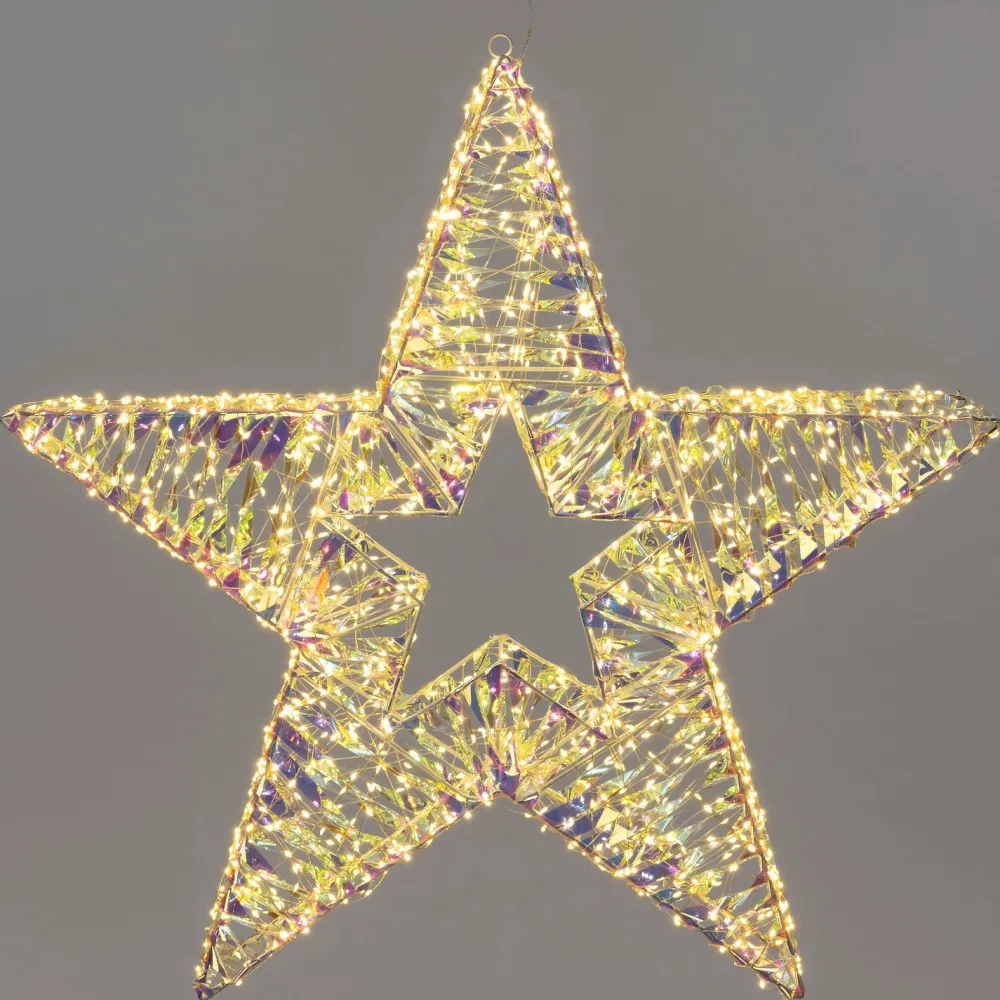 Der Durchmesser des Sterns beträgt 60 cm und die Höhe 9 cm. Die Figur ist aus transparentem Kunststoff und wird mit 960 warmweißen Lichtern über einen Adapteranschluss wunderschön beleuchtet (IP44 – also spritzwassergeschützt). Du musst nur einmal den integrierten Timer einstellen und dann ist das Licht immer dann an, wenn du es willst und du musst dich nicht mehr darum kümmern. Hast du schon an ein schönes Plätzchen gedacht, um deinem Garten etwas mehr Magie zu verleihen?