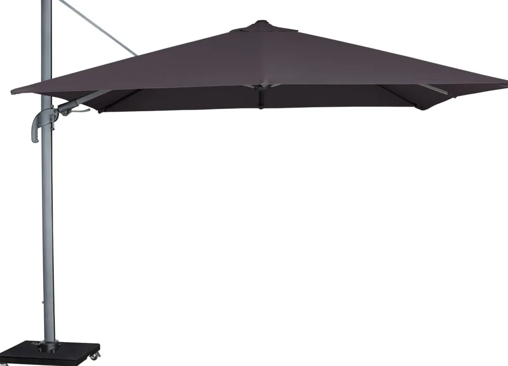 Dieser Ampelschirm wird ohne Ständer geliefert. Kombiniere den Schirm mit dem passenden ‚Kreuzfuß-Sonnenschirmständer Merida Stahl anthrazit‘.