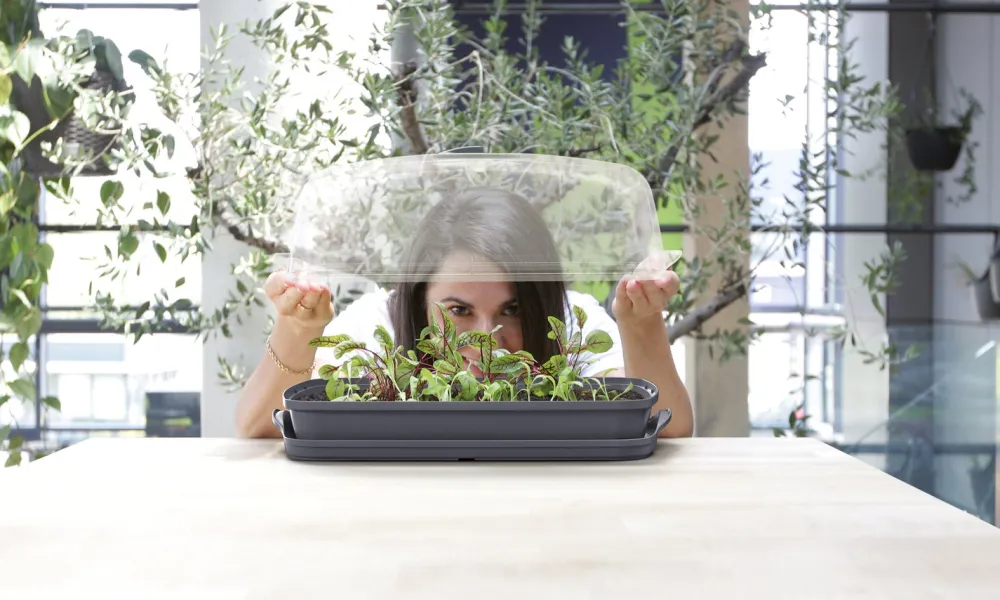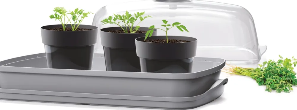 Der durchsichtige Deckel mit verstellbaren Belüftungsöffnungen schafft ein ideales Mikroklima und verhindert, dass die Pflanzen weder zu kalt noch zu warm stehen, weder zu trocken noch zu feucht und schützt den Keimling außerdem vor lästigen Insekten.