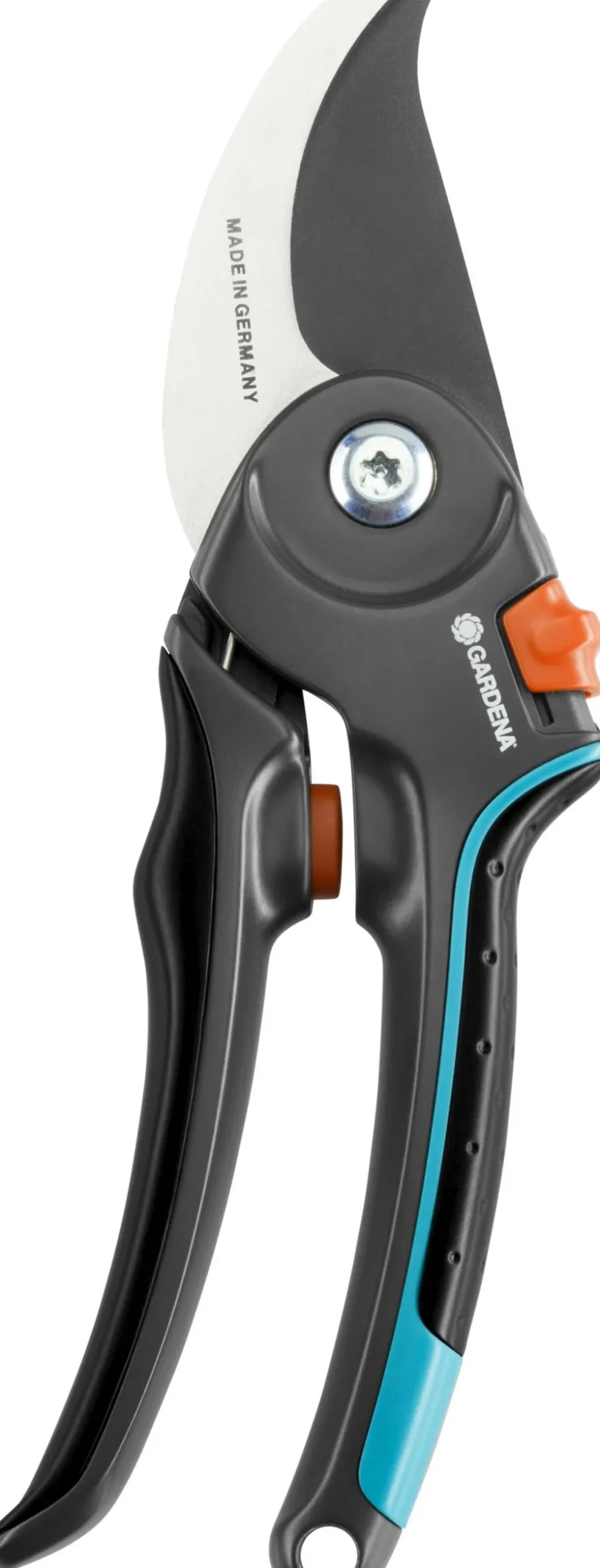 Nach der Arbeit verschließt du die Gartenschere zur sicheren Aufbewahrung mit nur einer Hand ganz leicht mit Hilfe des praktischen Einhand-Sicherheitsverschlusses.