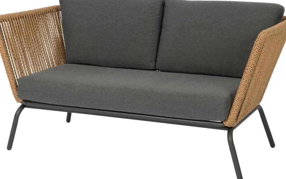Sitzt du am liebsten gesellig zu zweit auf der Terrasse? Dann ist dieses gemütliche Loungesofa aus der Serie ‚Iris‘ mit seiner Seil-Bespannung und den Eigenschaften von langlebigem Kunststoff genau das Richtige. Das moderne Loungesofa ‚Iris‘ von Intratuin sorgt mit seinem dekorativen Design und der Bespannung aus Kunststoffseilen für mehr Flair in jedem Garten und jeder Terrasse.