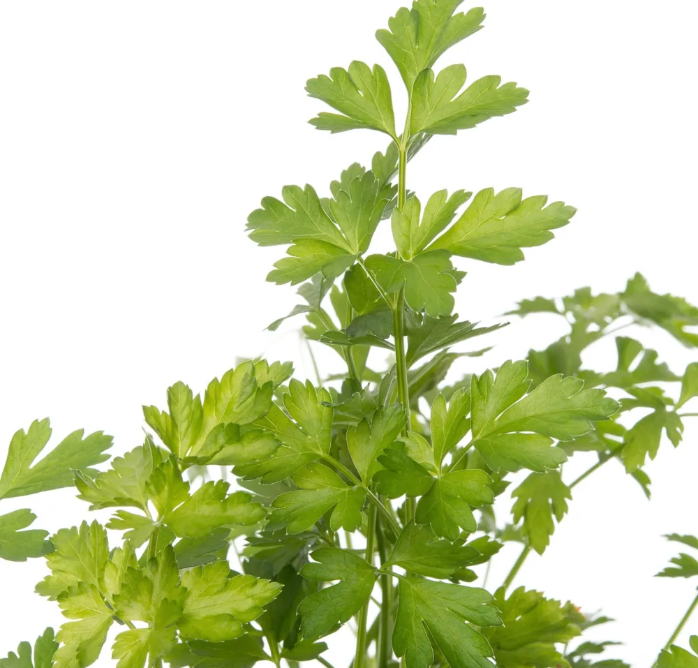 Er kann mehrmals geerntet werden, wenn er nicht zu kurz geschnitten wird. So bleiben die Wachstumspunkte intakt. Abgesehen davon, dass man alles wegschneidet, ist das verstreute Abschneiden der Blätter für das Nachwachsen von Vorteil. Petersilie wird in Salaten, Gemüse, Kartoffeln, Käse und Suppen verwendet. Sie sollte nicht auf Flächen angebaut werden, auf denen vorher andere Doldenblütler gewachsen sind.