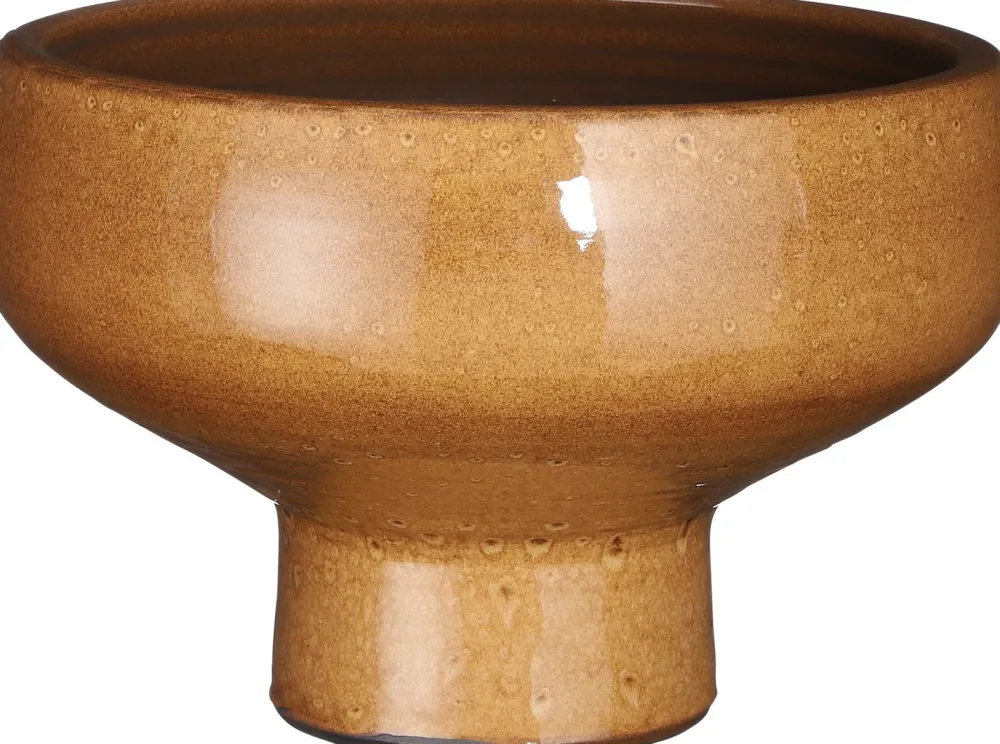 Die Pflanzschale ‚Merle‘ aus der Kollektion von Mica Decorations ist ein besonderer Blickfang. Die Schale für innen steht nämlich auf einem schmalen Sockel, der ihn buchstäblich über andere Töpfe hinausragen lässt. Außerdem fällt die schöne Farbgebung ins Auge. Die Terracotta-Pflanzschale ist ockerbraun mit warmen, natürlichen Farbnuancen, die sich harmonisch in jeden Einrichtungsstil fügen! Die Pflanzschale ‚Merle‘ wird in Portugal gefertigt und ist in verschiedenen Farben und Größen erhältlich. Diese Schale in der Farbe Braun hat eine Höhe von 18 cm und einen Durchmesser von 17 cm.