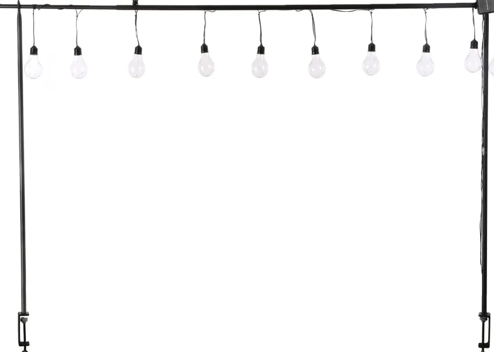 Die Tischklemme eignet sich für innen und außen. Die Lämpchen sind an einem Metallgestell befestigt und nutzen Solar-Energie.