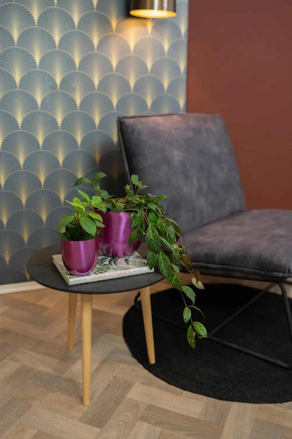 Wenn etwas auffällt, dann dieser tolle Blumentopf Nori von TS mit seiner auffälligen Trendfarbe in metallischem Lila. Dieser schöne Metallblumentopf aus der Nori-Serie ist aus einem Stück Blech gefertigt: Das ist wirklich altmodische Handarbeit! Das siehst du auch an der coolen Metallic-Oberfläche. An der Unterseite des Topfes findest du kleine Filzplättchen zum Schutz von Möbeln und Fensterbrettern. Schütze auch den Blumentopf mit einer passenden Einlage, um die Oxidation des Metalls zu verhindern. Weißt du schon, welchen Platz du Topf Nori geben wirst?
