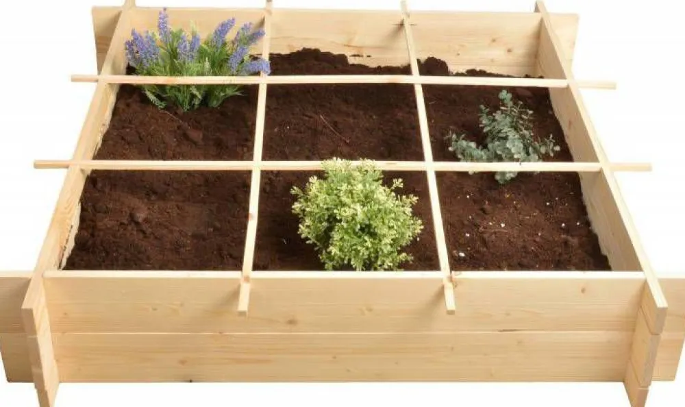 Erstelle schnell und einfach einen kompakten Gemüsegarten. Mit den mitgelieferten Trennlatten entstehen 9 Fächer, die individuell befüllt werden können (denk an Küchenkräuter, Tomaten-, Zucchinipflanzen usw.).