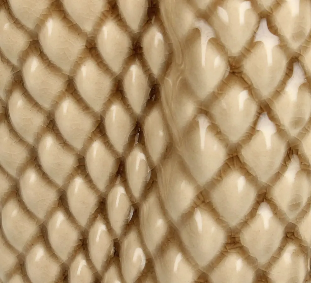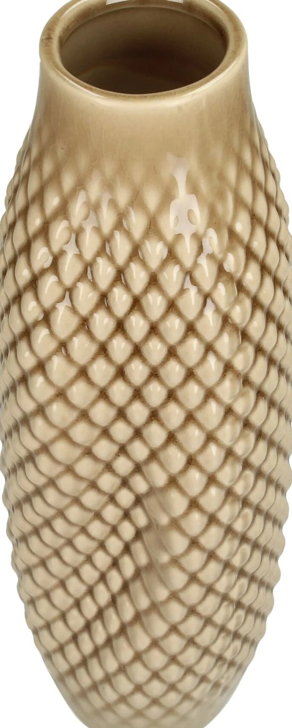Diese Vase ist braun, wodurch sie eigentlich mit jedem Stil gemischt oder kombiniert werden kann. Die Oberfläche weist ein dreidimensionales Muster auf, das die Textur nicht nur sichtbar, sondern auch angenehmbar fühlbar macht. Das verleiht ihr eine schöne Tiefenwirkung. Außerdem hat sie ein schönes gleichmäßiges geometrisches Muster.