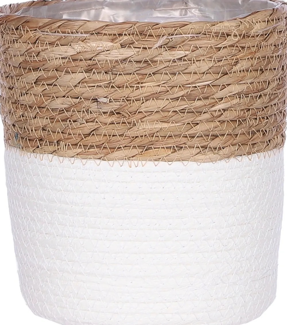 Der Pflanzkorb ‚Rachel‘ aus der Kollektion von Mica Decorations ist funktional und verleiht deiner Einrichtung zugleich einen schönen, natürlichen Touch. Der Übertopf-Korb ist nämlich aus Seegras gefertigt und somit auch eine umweltfreundliche Wahl. Das natürliche Element ist auch im oberen Teil des Pflanzkorbes zurückzufinden, während der untere Teil in Weiß gehalten ist. An der Innenseite ist der Korb mit Plastik ausgekleidet, sodass der sich gut als Übertopf oder Pflanzkorb für Pflanzen eignet, aber man kann ihn ebenso als Aufbewahrungskorb nutzen. Pflanzkorb ‚Rachel‘ ist in verschiedenen Größen und Farben erhältlich. Dieser Korb hat einen Durchmesser von 14 cm und ist ebenfalls 14 cm hoch.