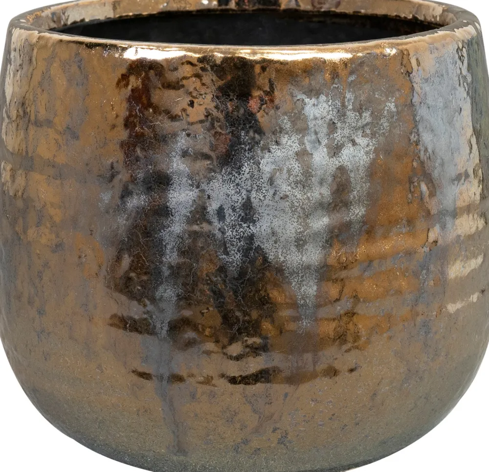 Schau dir diesen coolen, glänzenden Topf aus der Kollektion von TS Collection an. Der Blumentopf Yvette glänzt wie kein anderer! Der großzügige goldene Glanz schafft ein exklusives Gefühl. Festlich und luxuriös. Die Funken fliegen. Dieser goldene Blumentopf Yvette ist aus 100% natürlicher Keramik.