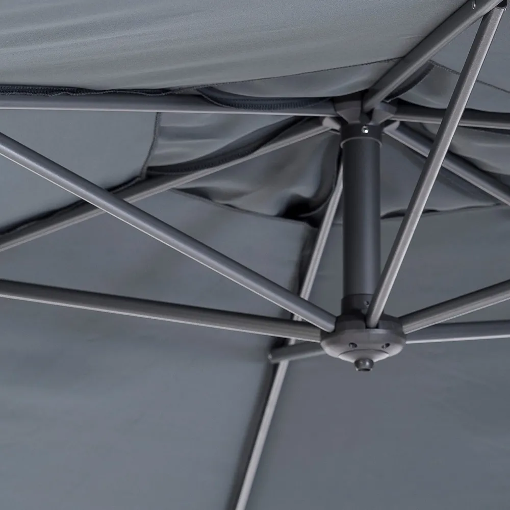 Dieser Ampelschirm ist mit einem Kreuzfuß aus Metall ausgestattet, der mit Fliesen beschwert werden muss. Der Sonnenschirm ist nicht für einen gewöhnlichen Sonnenschirmständer geeignet.
