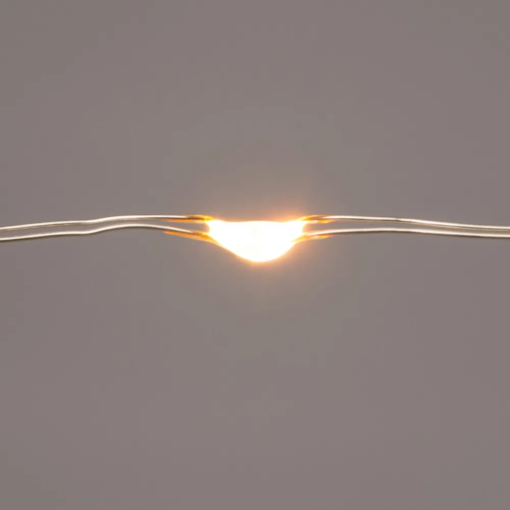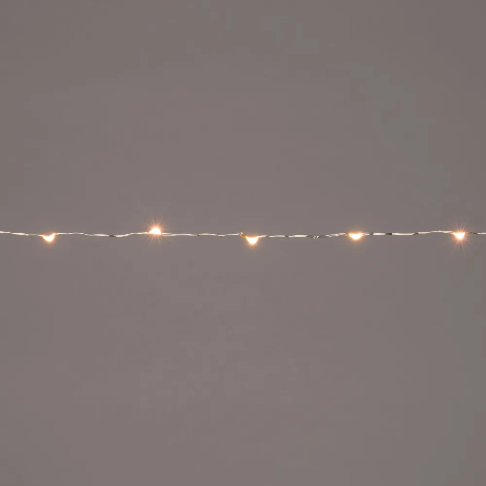 Mit dem integrierten Timer bestimmst du selbst, wann sich die Lichterkette ein- bzw. ausschaltet. Die Drahtlichterkette ist batteriebetrieben und benötigt 2 AA-Batterien (nicht im Lieferumfang enthalten).