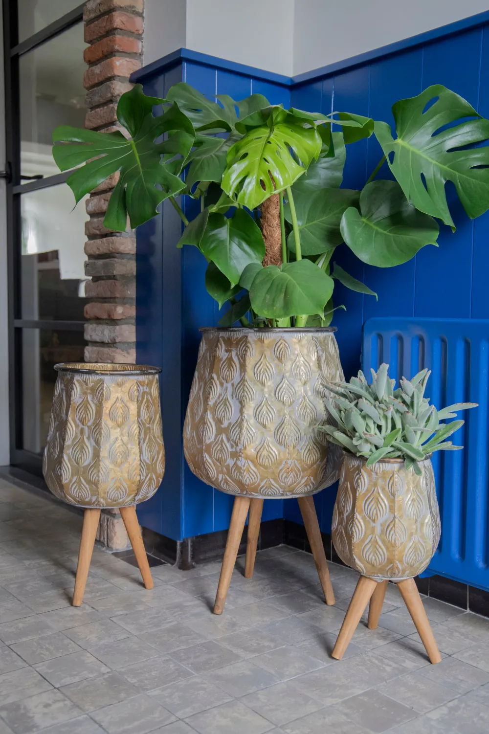 Pflanzen bringen Farbe und Leben in dein Interieur und tragen zu einer entspannten Atmosphäre bei. Mit dem richtigen Blumentopf kommen deine grünen Freunde noch besser zur Geltung! Kombiniere Übertöpfe in verschiedenen Farben, Größen und Höhen für einen dynamischen Effekt. Die schöne Struktur verleiht dem Blumentopf ‚Emir‘ ein luxuriöses, schickes Aussehen. Dieser Blumentopf auf Beinen hat eine goldene Farbe und einen raffinierten Druck auf dem Topf. Die Serie Emir enthält Übertöpfe in unterschiedlichen Größen. Dieser Blumentopf hat einen Durchmesser von 25,5 cm und eine Gesamthöhe von 50 cm. Die Blumentöpfe sind handgefertigt, also kleine Unikate, die in ihrer Farbe und Form leicht von der Abbildung abweichen können.