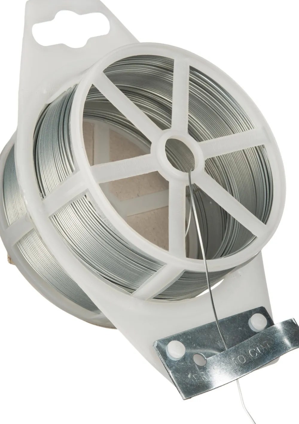 Verzinkter Metalldraht, geeignet für viele Anwendungen. Abmessungen: Durchmesser 1,2 mm x 50 m.