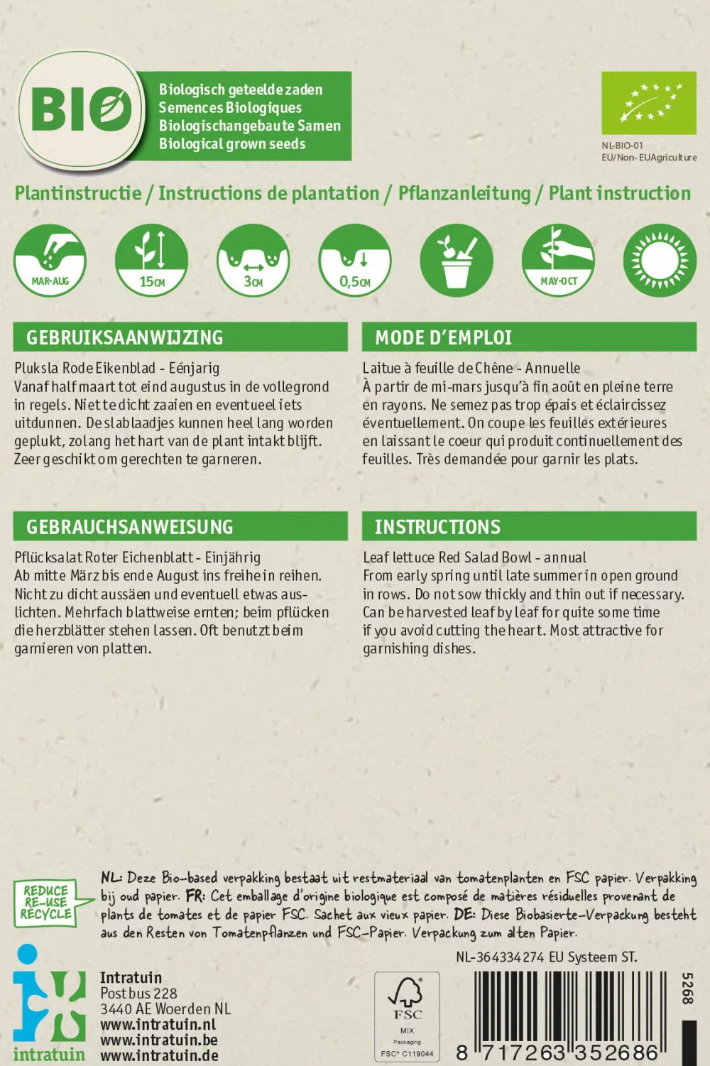Dieser Pflücksalat wird auch Eichblattsalat genannt und hat frische grüne mit rötlich-braunen, krausen Blättern, die in Salaten schmackhaft und als Garnitur schön sind. Dieser Salat ist nicht winterhart und braucht eine Temperatur von mindestens 5 Grad. Die Keimung des Samens erfordert eine niedrige Temperatur und Tageslicht. Bedecke das Saatgut also nur ganz leicht. Im Sommer können die Salatköpfe anfangen zu schossen, das heißt, sie bekommen einen Blütenstiel. Der Geschmack der Blätter wird dann etwas bitter.