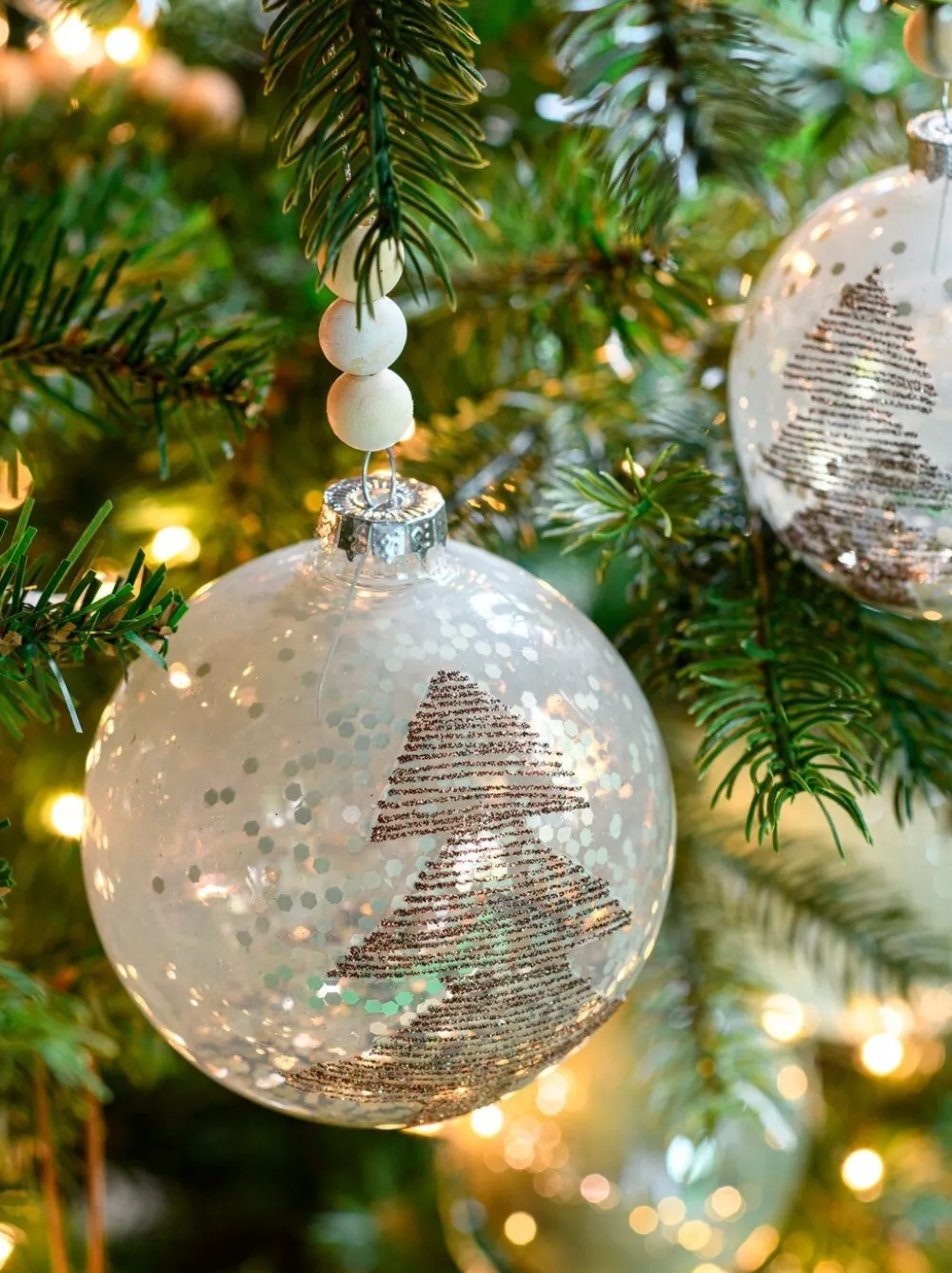 Schmücke deinen Weihnachtsbaum mit dieser schönen Weihnachtskugel Bentford aus der Kollektion von Intratuin. Diese Kugel ist mit einem braunen Glitzerbaum bedruckt und im Inneren der Kugel sorgt braungoldenes Konfetti für tolle Lichteffekte, wenn das Licht des Weihanchtsbaumes darauf fällt. Die kleinen Holzkugeln an der Schnur der Kugel machen diese besondere Kugel perfekt. Diese gläserne Weihnachtskugel hat einen Diameter von 8 cm.
