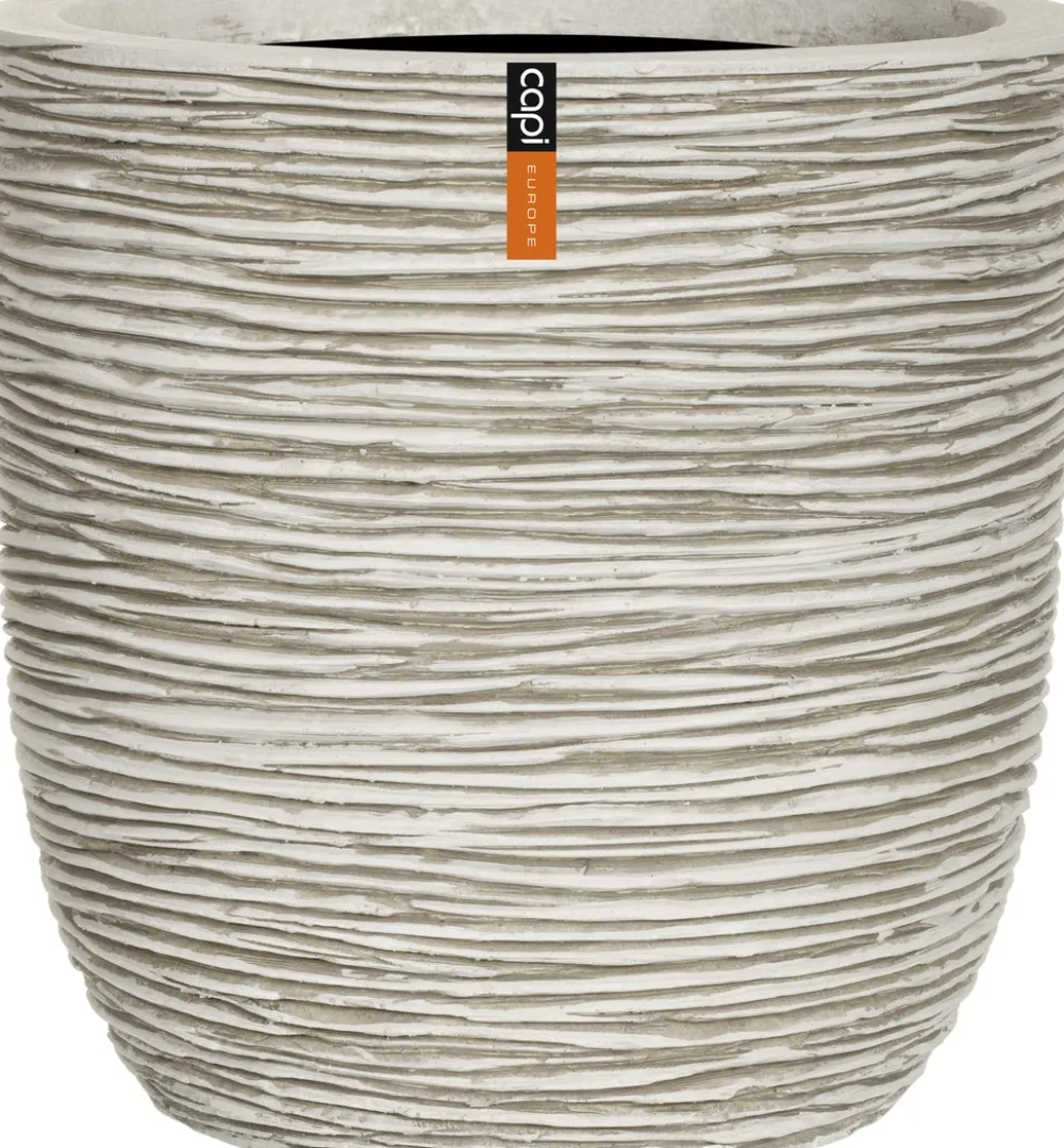 Die Capi Nature Kollektion ist hinsichtlich der Formen und Strukturen von der Natur inspiriert, die Pflanzen und Töpfe zu einer Einheit werden lassen. Die Blumentöpfe sind handgefertigt, so dass jeder Topf ein Unikat ist. Die Kollektion bei Intratuin besteht aus Rib und Row. Beide Strukturen sind eine Anspielung auf die Natur. Die Topfserie Rib ist aus einem harmonischen Rhythmus der Natur aufgebaut. Die Row-Serie hat ihren Namen von den verschiedenen Schichten der Reihen in der Struktur. Dieser Capi Nature Blumentopf Rib ist UV-beständig, frostsicher und leicht. Dieser Topf hat die Farbe Elfenbein und einen Durchmesser von 35 cm.