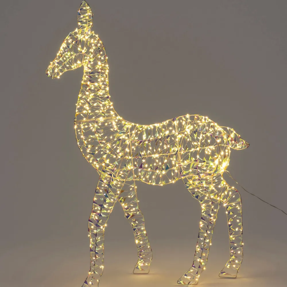 Die Größe des Rentiers beträgt 72 x 10 x 100 cm. Die Figur besteht aus transparentem Kunststoff und wird mit 720 warmweißen Lichtern über einen Adapteranschluss wunderschön beleuchtet (IP44 – d.h. spritzwassergeschützt). Du musst nur einmal den integrierten Timer einstellen und dann ist das Licht immer dann an, wenn du es willst und du musst dich nicht mehr darum kümmern. Hast du schon an ein schönes Plätzchen gedacht, um deinem Garten etwas mehr Magie zu verleihen?