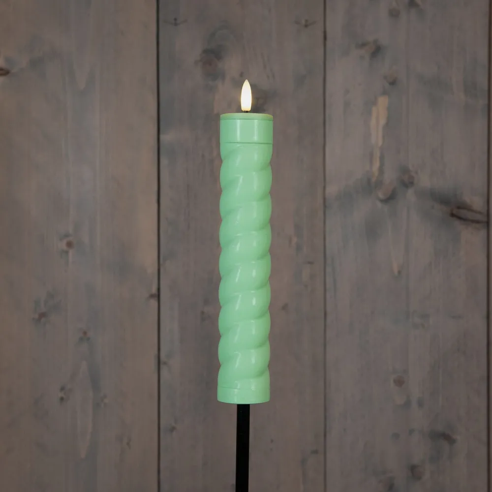 Die Solarfackel Swirl von Anna’s Collection mit 3D-Docht und in der Farbe Grün kombiniert modernes Design mit langlebiger Beleuchtung. Mit einem Durchmesser von 4 cm und einer Höhe von 21 cm, auf einem 76 cm hohen Pfahl, verbreitet diese Fackel ein stimmungsvolles Licht.