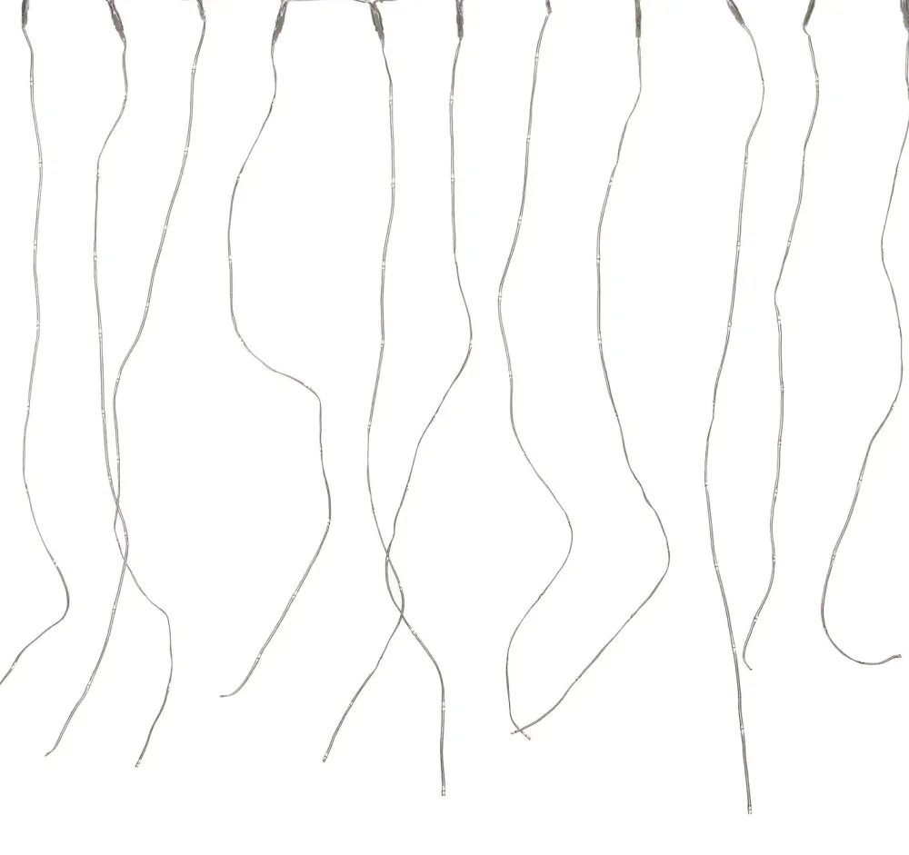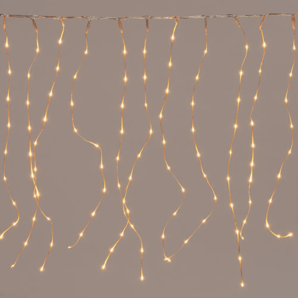 Die Vorhangbeleuchtung besteht aus 100 transparenten Strängen mit insgesamt 1.000 LED-Lichtern, die ein besonders warmes Licht abgeben. Die Breite des beleuchteten Vorhangs beträgt 5 m und die Länge der Stränge 50 cm. Diese Weihnachtsbeleuchtung ist mit einer Zeitschaltuhr ausgestattet.