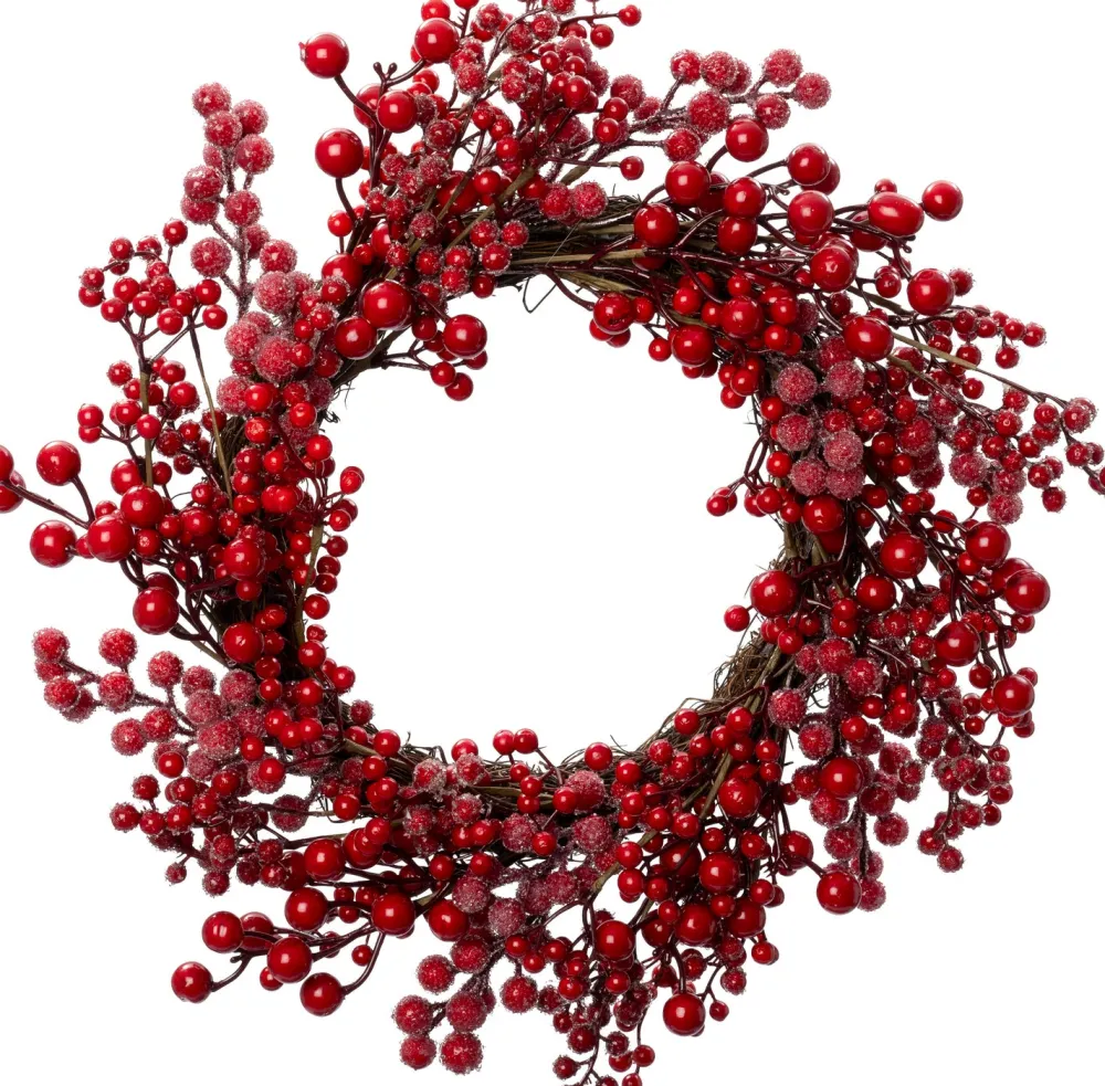 Ein wunderschöner Weihnachtskranz voller tiefroter Beeren, der an den Feiertagen viel Atmosphäre verbreiten wird! Der Weihnachtskranz hat eine schöne Frostschicht über den Beeren, so dass er aussieht, als wäre er wirklich gefroren. Mit einem Durchmesser von 50 cm wird er immer einen guten Platz im Haus finden. Der Weihnachtskranz macht sich auch gut als Dekoration auf dem Tisch. Ideal, um ihn bei Bedarf mit anderen Weihnachtsdekorationen zu kombinieren.