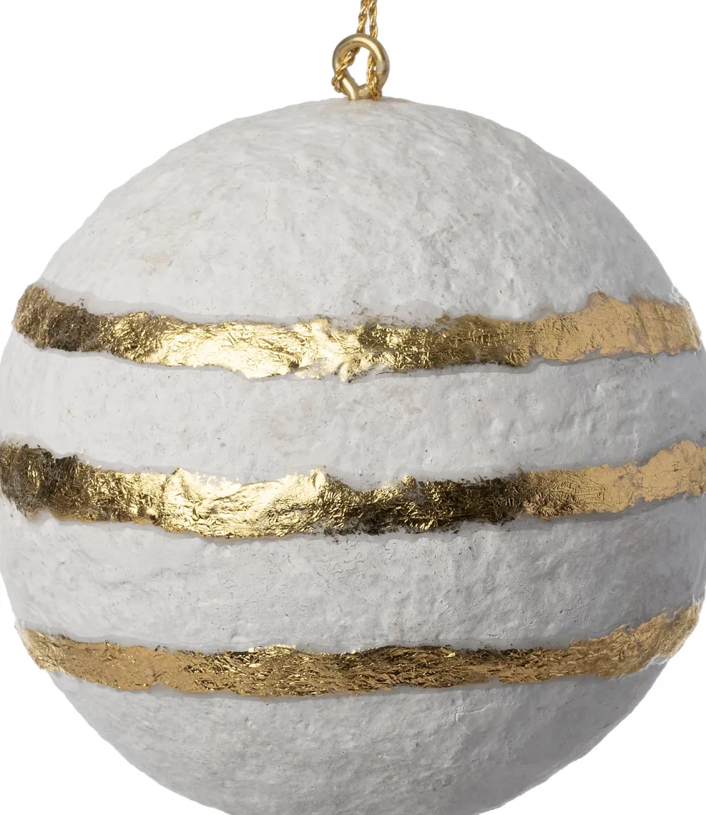 Verleihe deinem Weihnachtsbaum einen schicken Look mit dieser Kugel aus der Weihnachtskollektion von Intratuin. Die Kugel hat eine weiße Farbe mit einem funkelnden Goldfinish. Das Material ist aus strapazierfähiger Baumwolle gefertigt. Perfekt für einen stilvollen und nachhaltigen Christbaumschmuck. Erhältlich in verschiedenen Mustern. Der Durchmesser dieser Kugel beträgt 7 cm und die Höhe 7 cm. Kombiniere das Ornament mit anderem Weihnachtsschmuck oder Kugeln und gestalte ein stilivolles Gesamtbild.