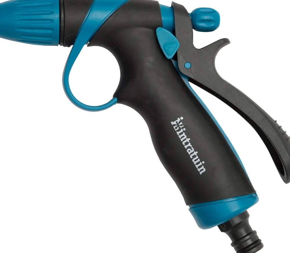 Diese Intratuin-Gartenspritze ist einstellbar von feinem Sprühnebel bis hin zum kräftigen Sprühstrahl. Die Gartenspritze hat einen weichen, komfortablen Griff mit Feststelltaste und einen Universalanschluss, der mit allen gängigen Marken kompatibel ist.