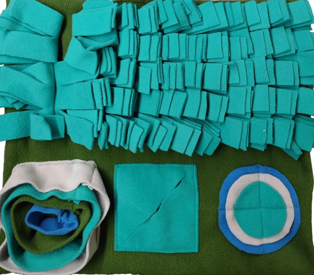 Diese Aktivitätsmatte von Intratuin bringt deinen Hund dazu, seinen Snack zu suchen, was ihm extra viel Spaß macht und seine Schnüffelqualitäten herausfordert. Verstecke ein Hundeleckerli unter einem der verschiedenen Stoffteile und lege die Matte auf den Boden. Dein vierbeiniger Freund wird nun sofort anfangen, das Leckerli zu suchen und seine Denkleistung wird angeregt. Lege die Matte wieder weg, wenn dein Hund sein Leckerli gefunden hat und biete sie nach ein paar Tagen wieder an. So bleibt es ein spannendes und immer wieder neues Spielzeug. Ideal, um den Hund auf spielerische Art und Weise zu füttern. Gegen Fressattacken und Langeweile. Die Schnüffelmatte ist mehrfarbig und aus Polyester gefertigt. Die Maße der Matte sind 40 x 45 cm und die Höhe beträgt etwa 6 cm.