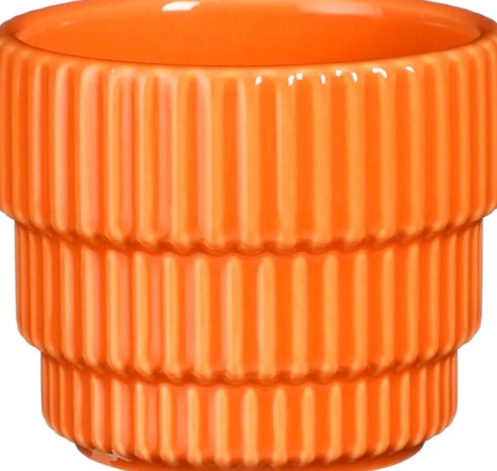 Der Blumentopf Cella von Mica Decorations ist eine Kombination aus Stil und Funktionalität. Er ist in einem auffälligen Orange gehalten und hat ein einzigartiges, geschichtetes Design mit vertikalen Linien. Er besteht aus hochwertiger Keramik und ist die perfekte Basis für all deine Lieblingspflanzen.