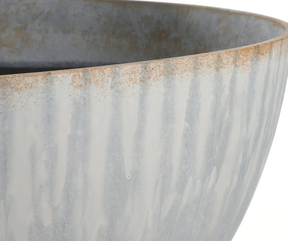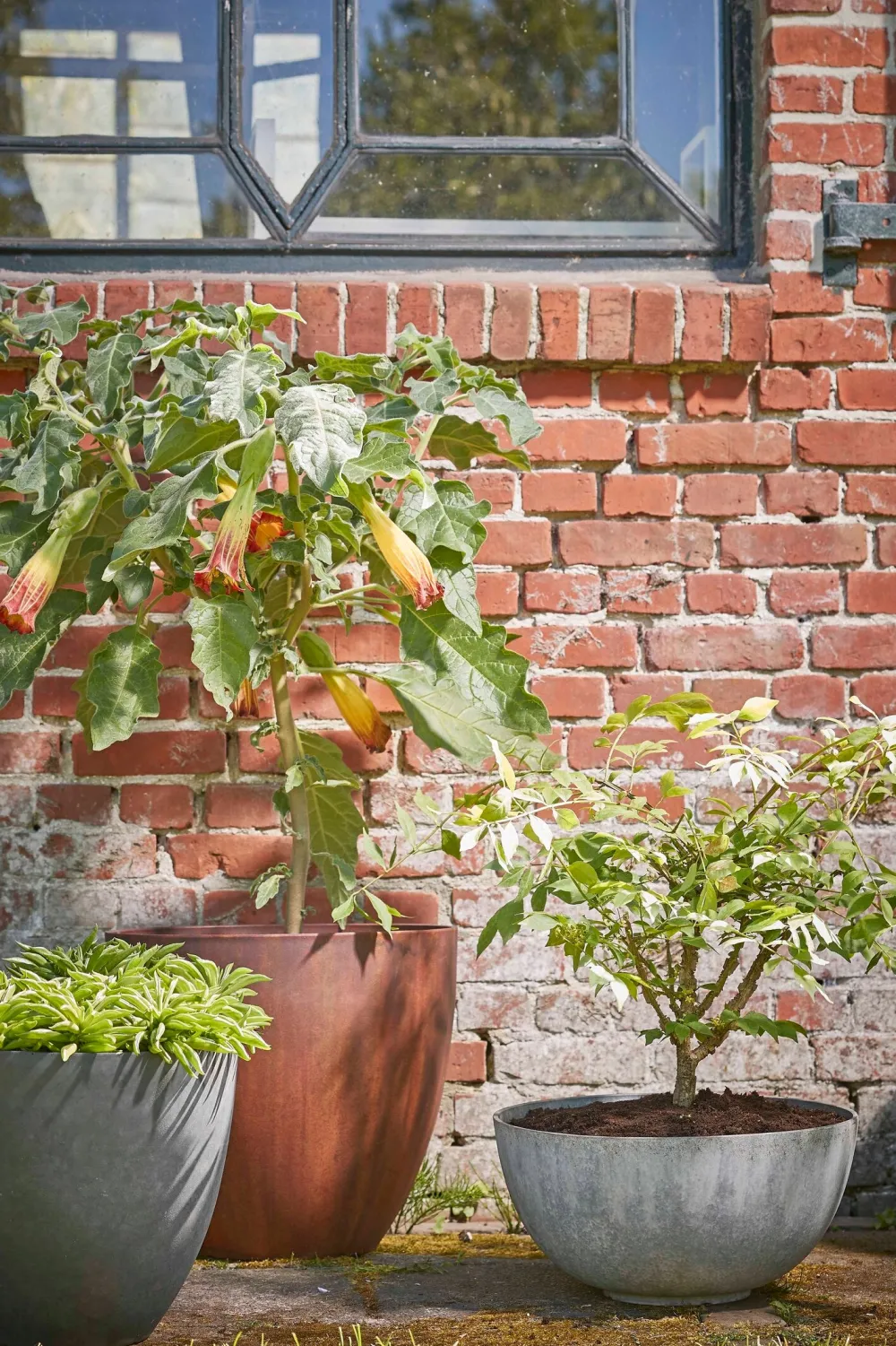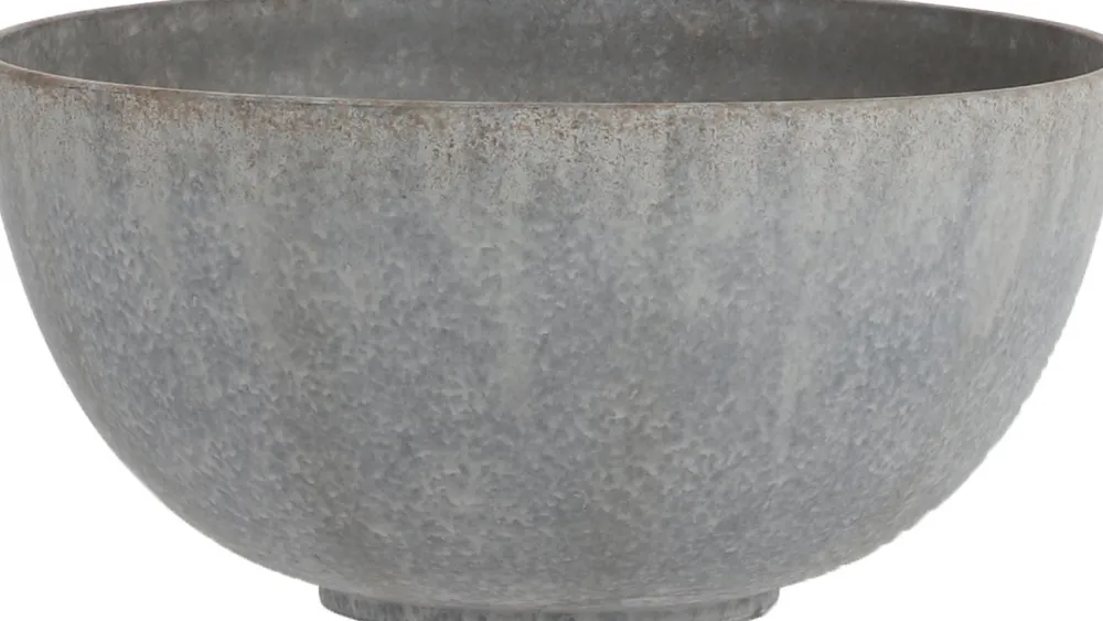Erst wenn du die Bravo-Pflanzschale von Mica Decorations anhebt, merkst du, dass sie nicht aus Stein ist. Die Schale ist aus leichtem Kunststoff gefertigt und leicht anzuheben. Die hellgraue Farbe mit der Zinkoberfläche verleiht ihr jedoch einen robusten Betonlook. Eine große oder mehrere kleine Pflanzen eignen sich hervorragend für diese Pflanzschale.