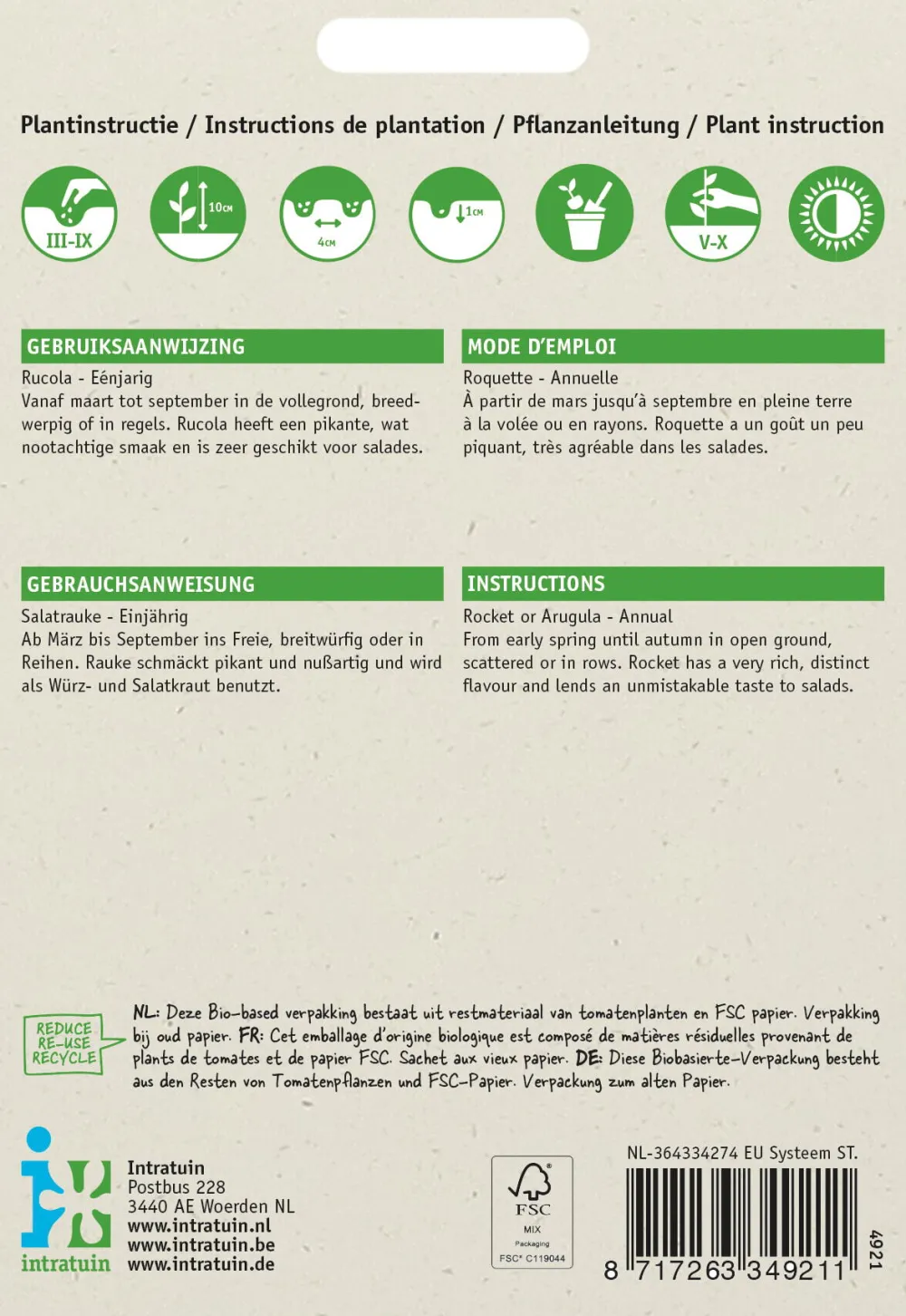 | Besonderheiten | Nach der Ernte regeneriert die Rucola-Pflanze sich wieder. So kannst du bis zu 4x Rucola ernten. |