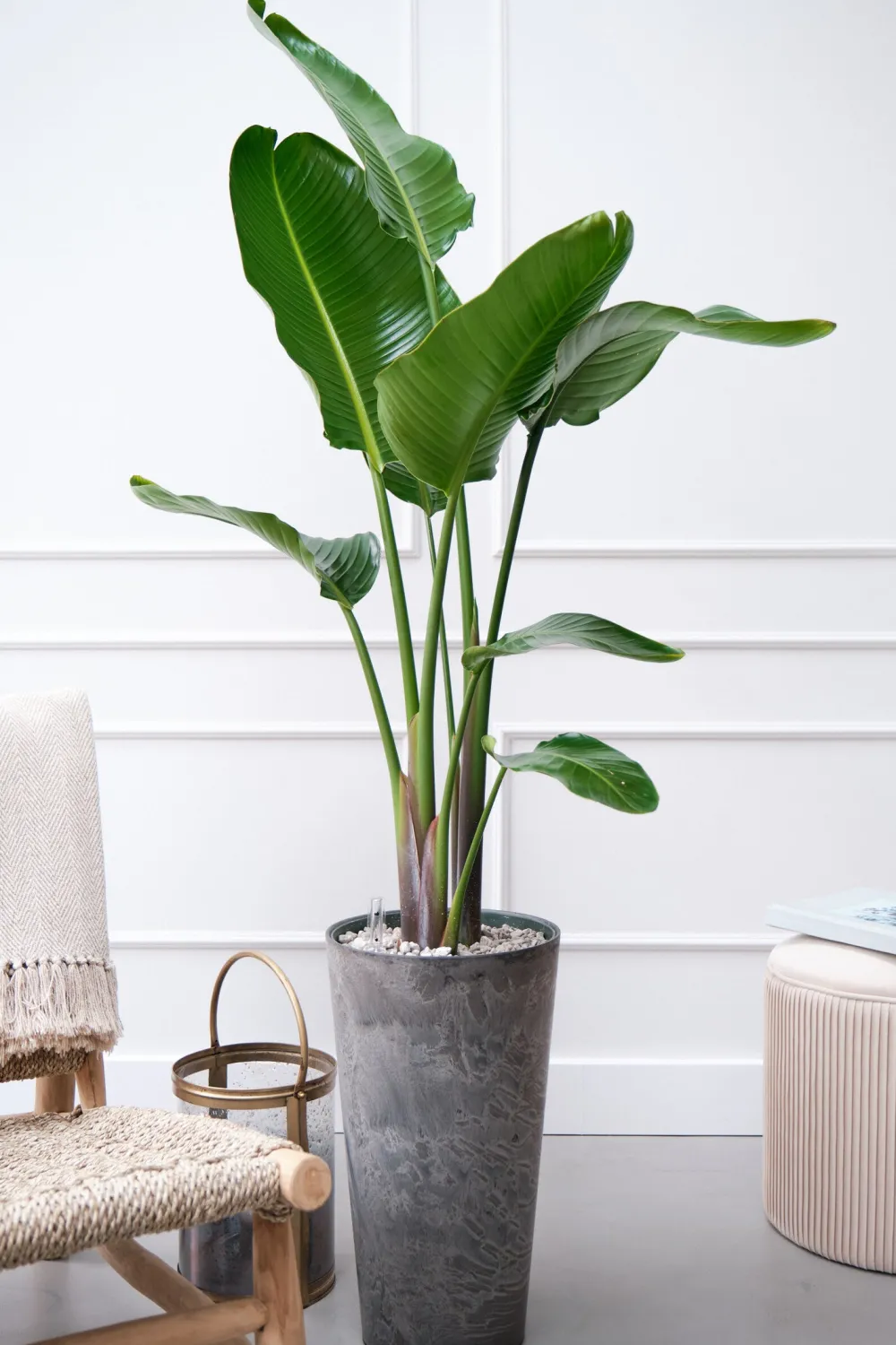 Stelle die Strelitzie an einen hellen Standort ohne direktes Sonnenlicht. Gieße deine grüne Schönheit regelmäßig und dünge in den Sommermonaten wöchentlich, denn für ihr üppiges Wachstum benötigt die Strelitzie auch jede Menge Nahrung! Die Strelitzie mag am liebsten leicht feuchte Erde, aber keine nassen Füße.