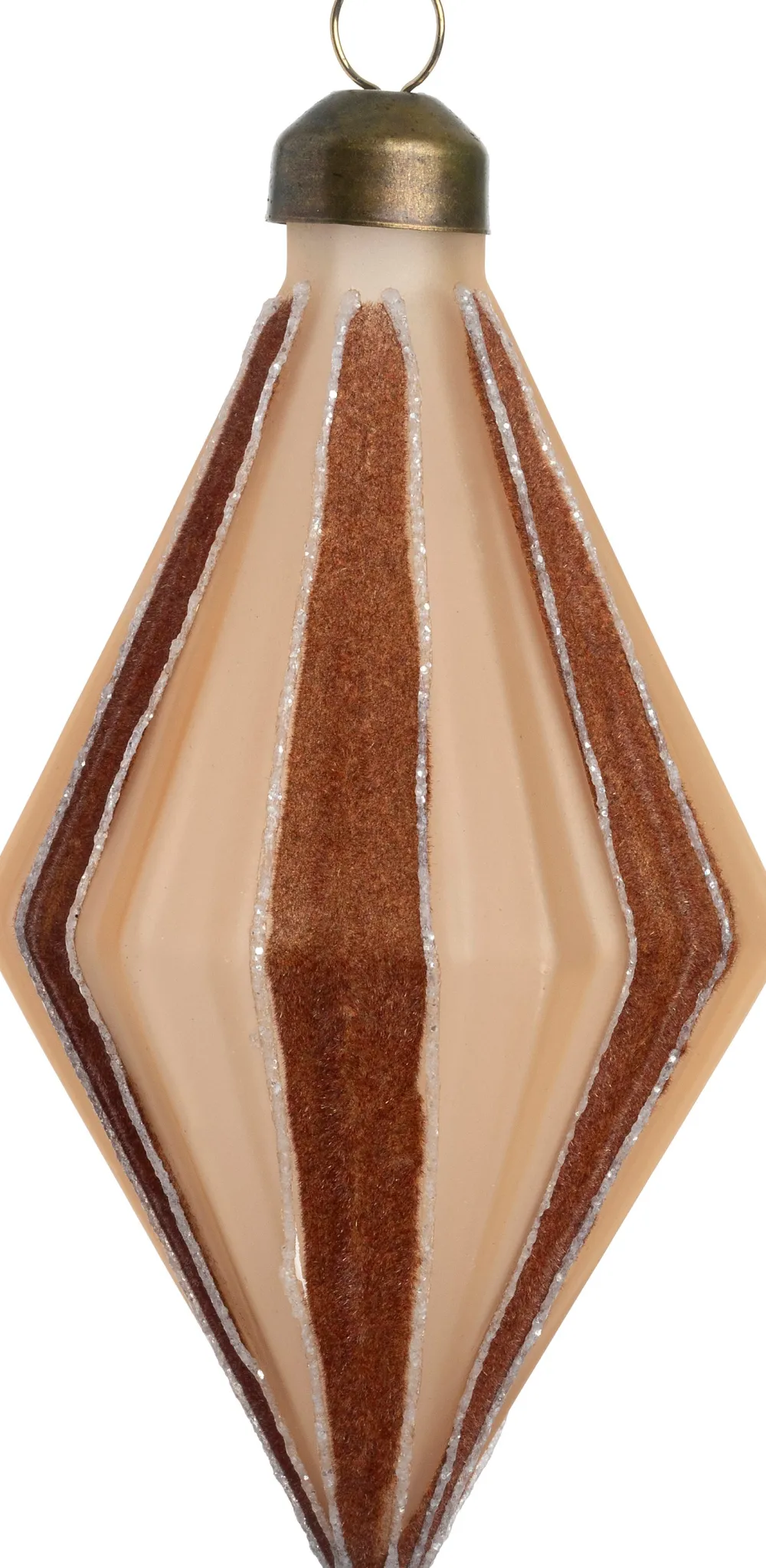 Neben den traditionellen Kugeln hat Intratuin auch andere Formen von Weihnachtsbaumschmuck im Sortiment. Zum Beispiel dieses rhombusförmige Ornament in den Farben Beige und Braun. Mit seiner schönen Oberfläche wird er in jedem Baum glänzen. Das Ornament ist aus Glas, also achte darauf, dass er an einem sicheren Ort hängt, an dem er nicht leicht berührt werden kann. Kombiniere mit verschiedenen Kugeln und Ornamenten in passenden Farben und vervollständige dein Weihnachtsfest!