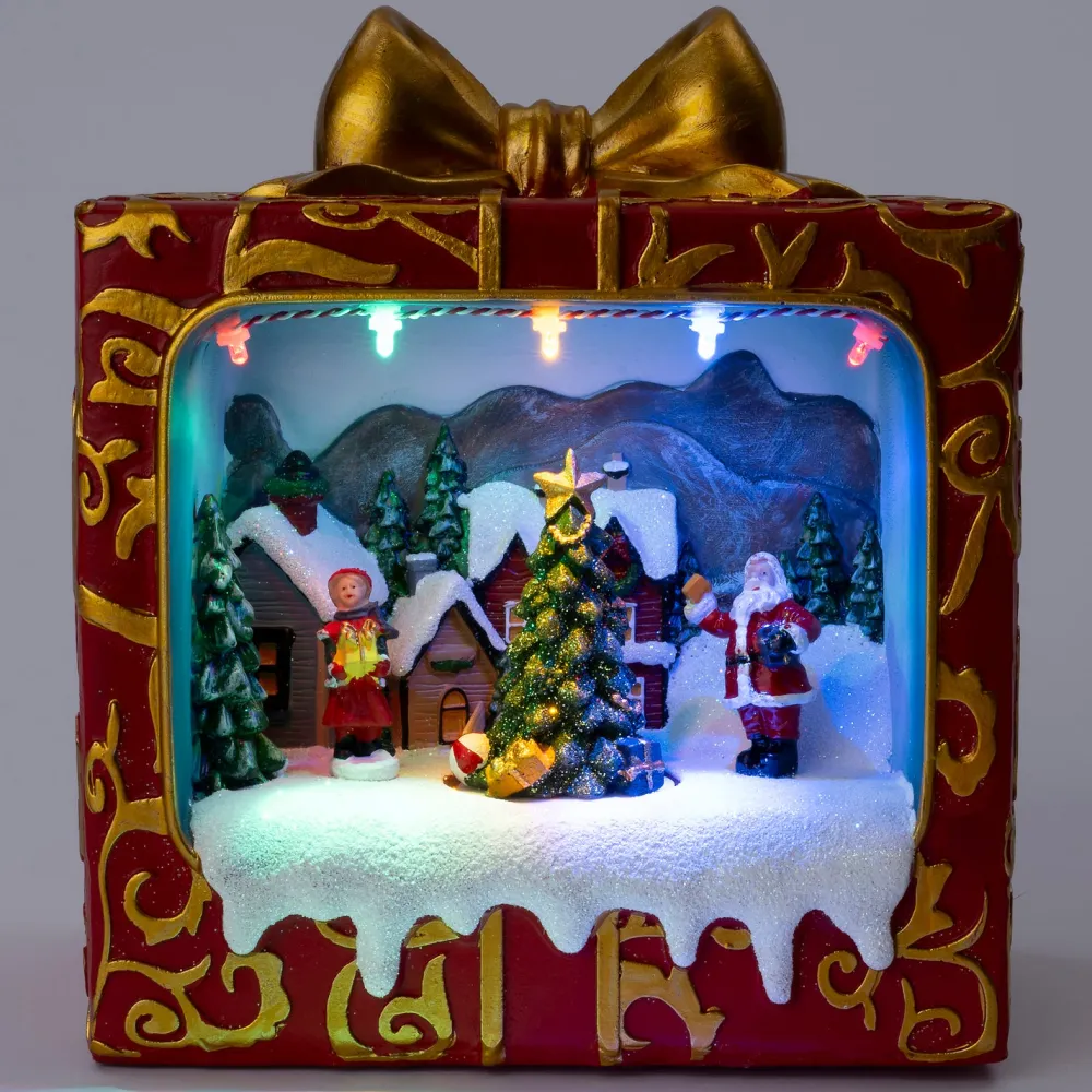 Das Intratuin Weihnachtshäuschen Geschenk-Szene 18,5 x 12,5 x 21,5 cm ist eine märchenhafte Dekoration, die den Zauber von Weihnachten in dein Zuhause bringt. Dieses farbenfrohe Haus aus Polyresin zeigt eine gemütliche Geschenkszene und ist mit seinen Maßen von 18,5 x 12,5 x 21,5 cm ein wunderschöner Blickfang in deinem Weihnachtsdorf. Das Haus verfügt über stimmungsvolle LED-Beleuchtung in verschiedenen Farben, bewegliche Elemente und fröhliche Weihnachtsgeräusche, die für eine lebendige Weihnachtsstimmung sorgen.